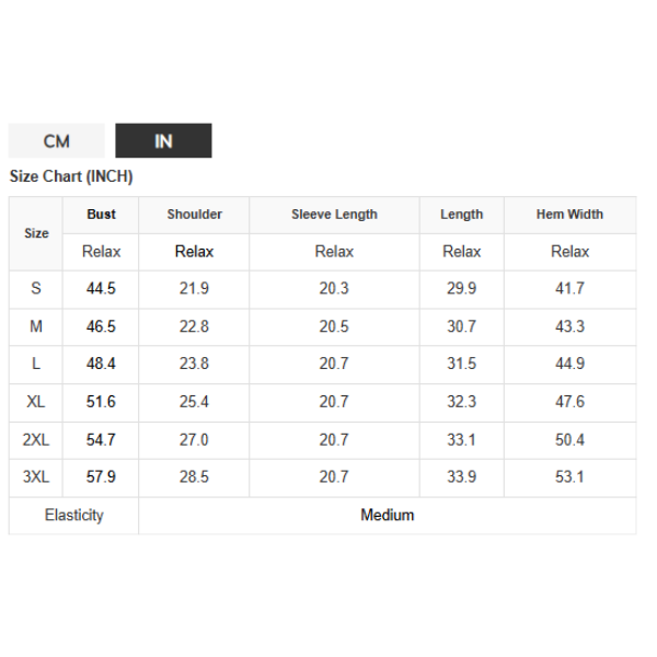 Size Bust Shoulder Sleeve Length Length Hem Width