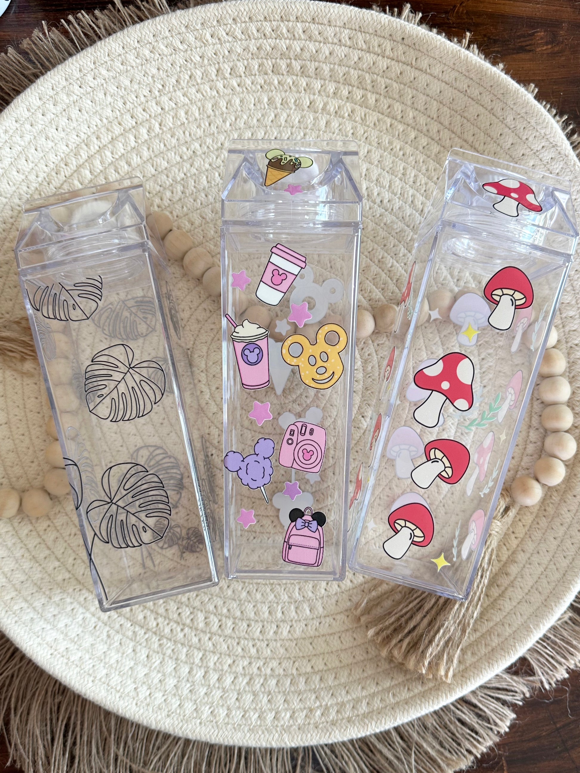 The cutest! Look trendy while enjoying your favorite beverage in this adorable clear acrylic milk carton container. It is decorated with uvdtf decals which make it the perfect trendy must have!
