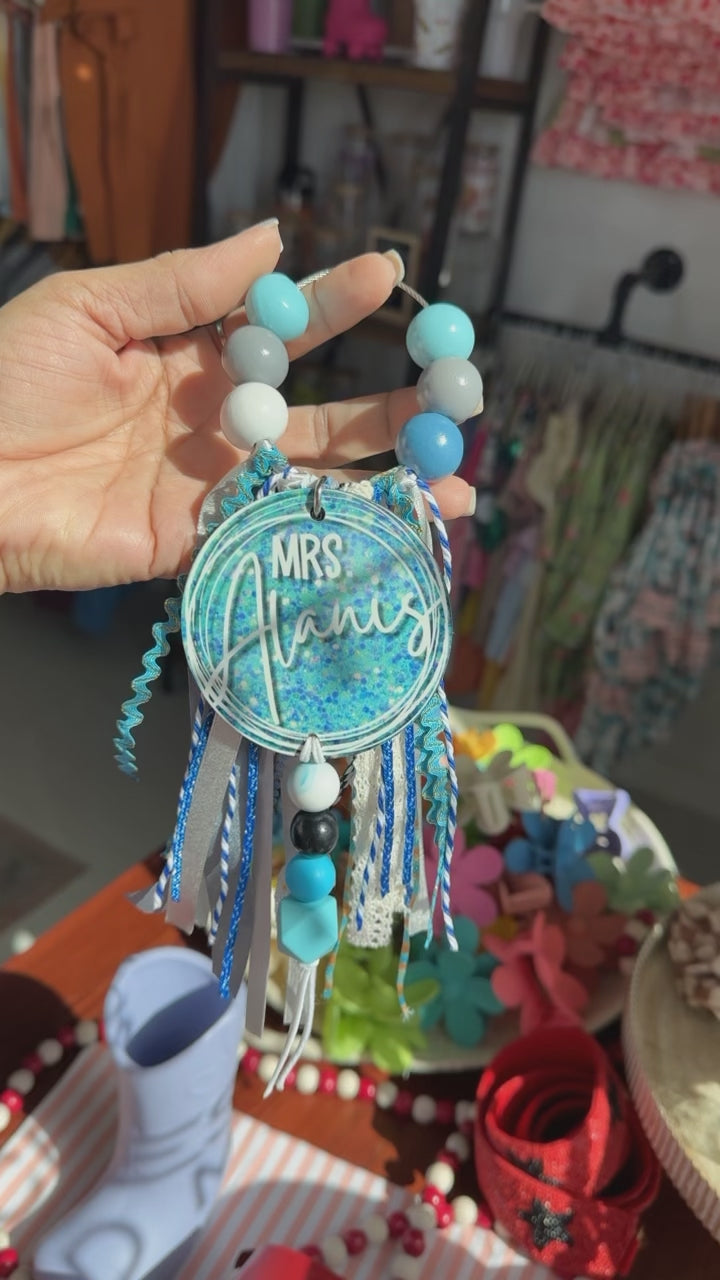 Beautiful personalized charm for any bag, tote, backpack and more. Customize with your name or any other monogram. Available in a multitude of colors and designs. Message for more info.