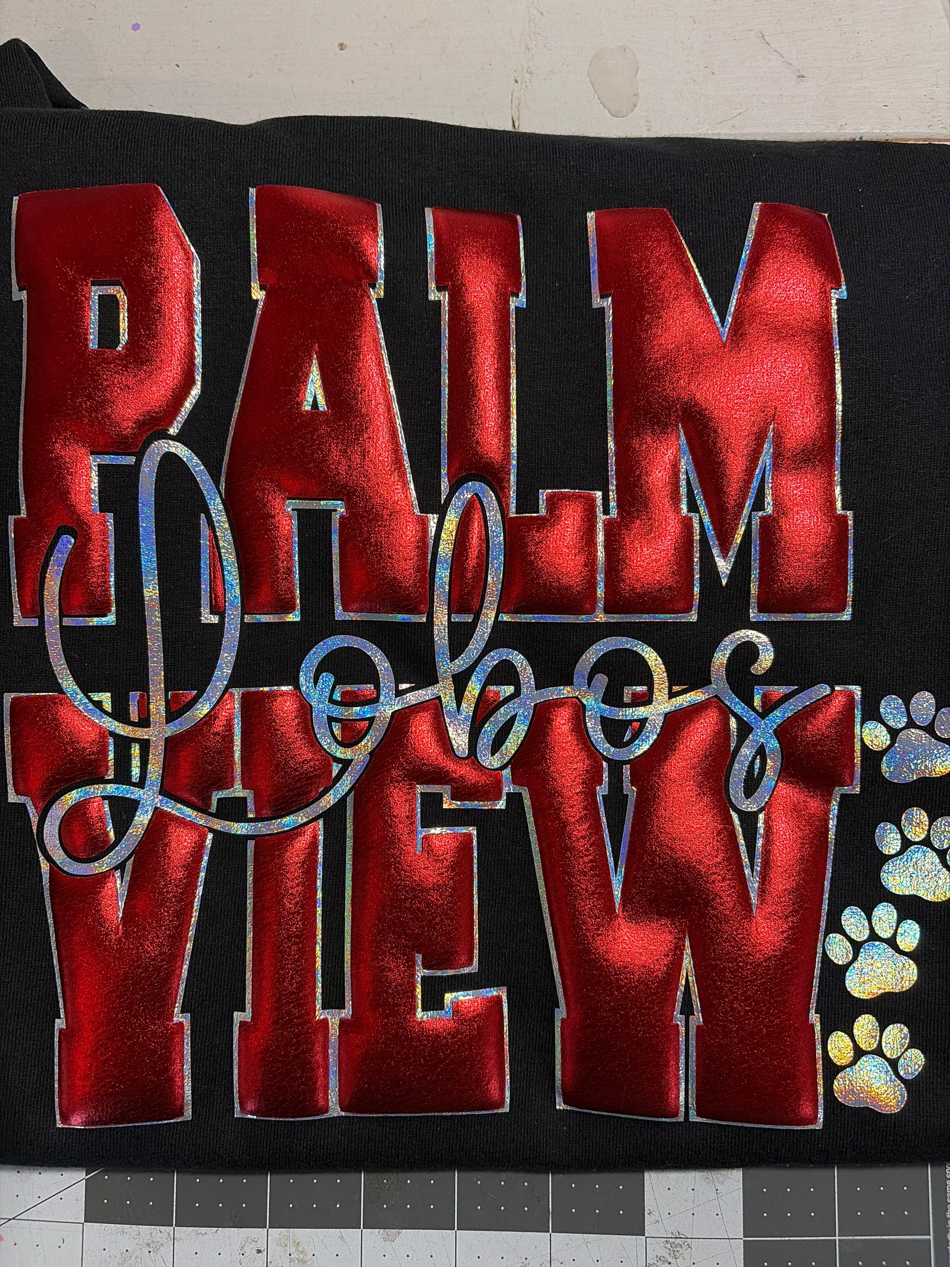 The metallic puff vinyl spirit shirt is a trendy and eye-catching garment designed for fans to show off their team pride in style. This shirt features a comfortable and durable fabric, adorned with vibrant metallic puff vinyl graphics that create a three-dimensional effect. The puff vinyl design not only adds a unique texture but also ensures that the team logo and slogans stand out with a glossy, reflective finish. Perfect for game days, pep rallies, or casual wear, this spirit shirt combines comfort and flair, making it a must-have for any dedicated supporter looking to make a bold statement.