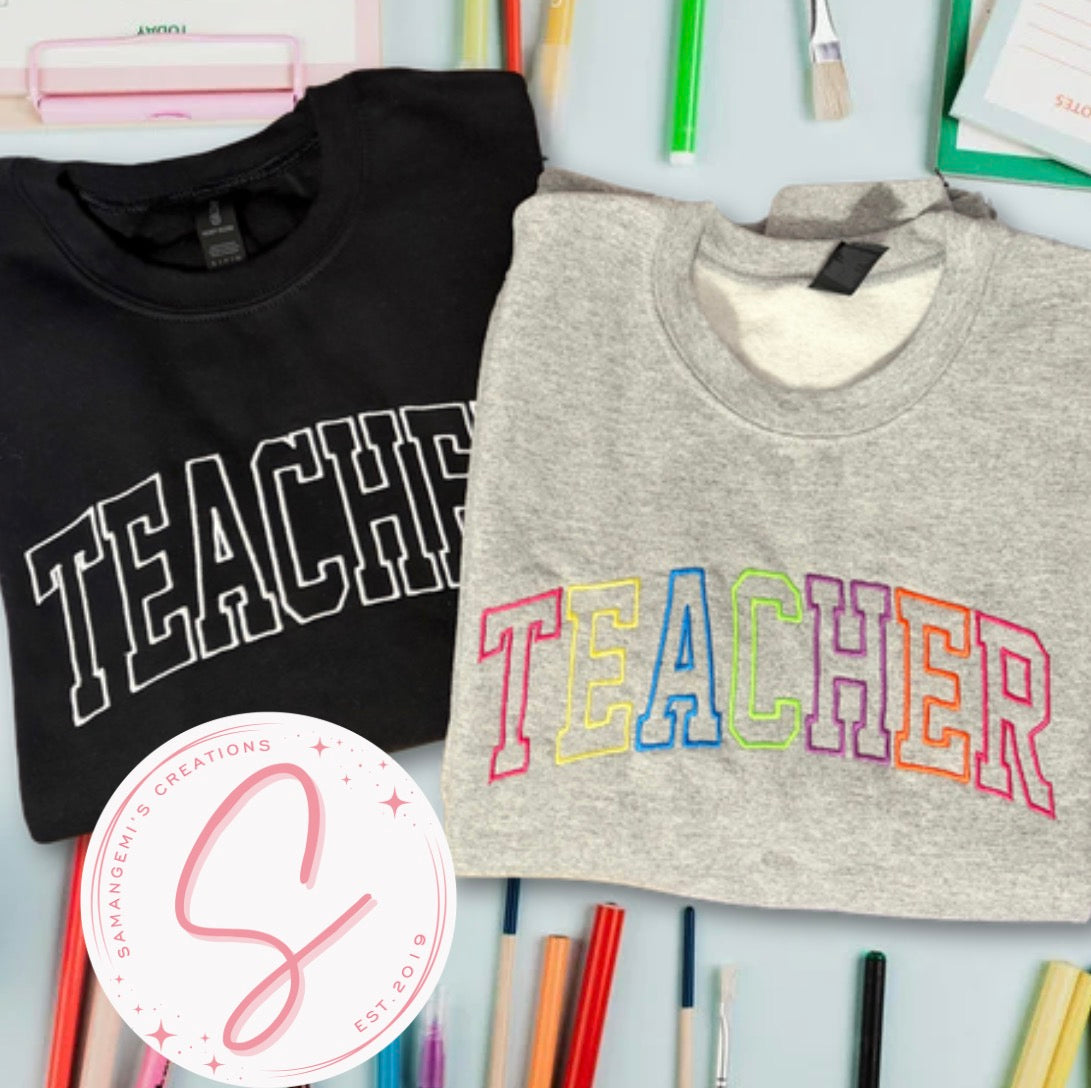 ๐ Teacher Embroidered Crewneck Sweatshirt