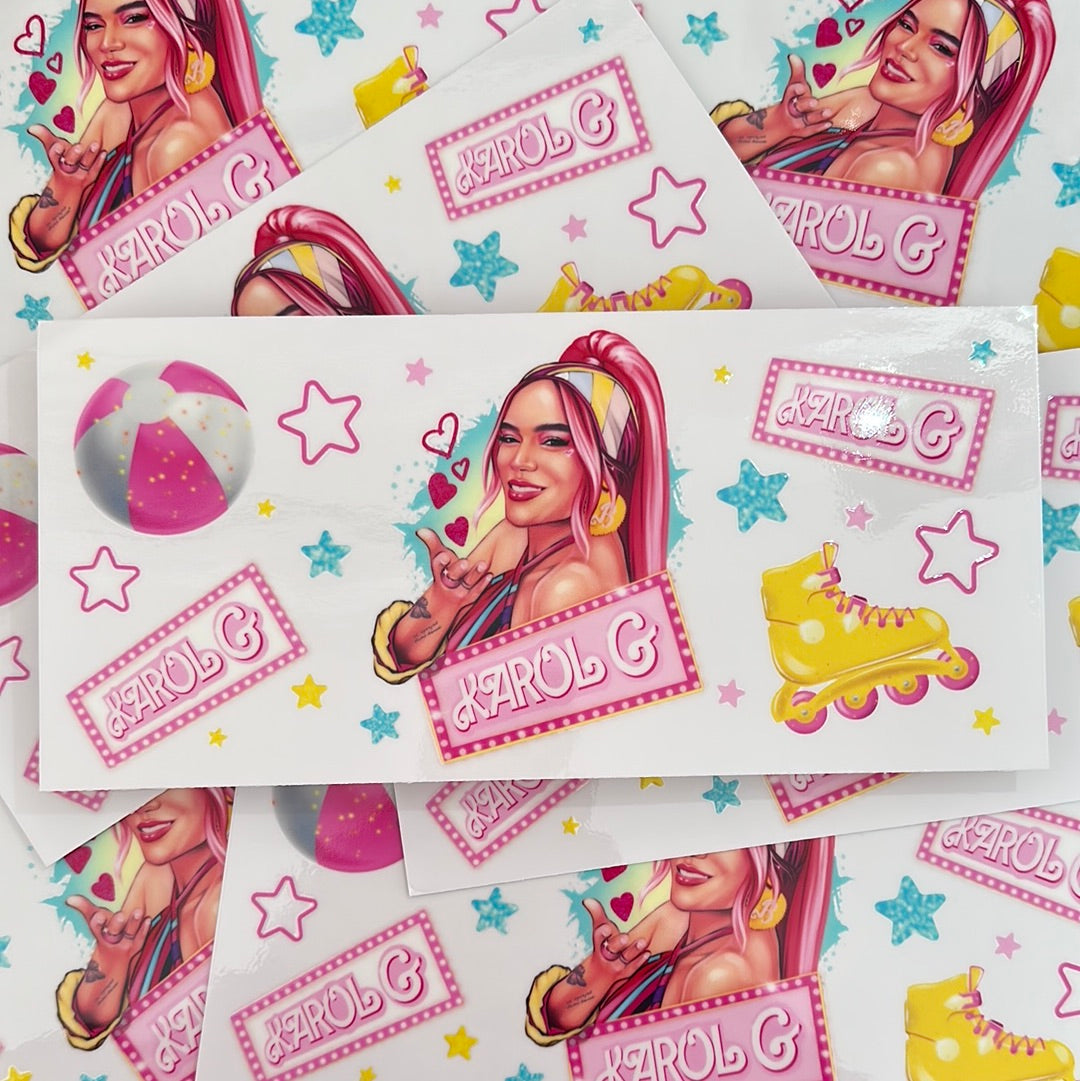 Uvdtf in pink Barbie inspired Karol G and Beach inspired Karol G