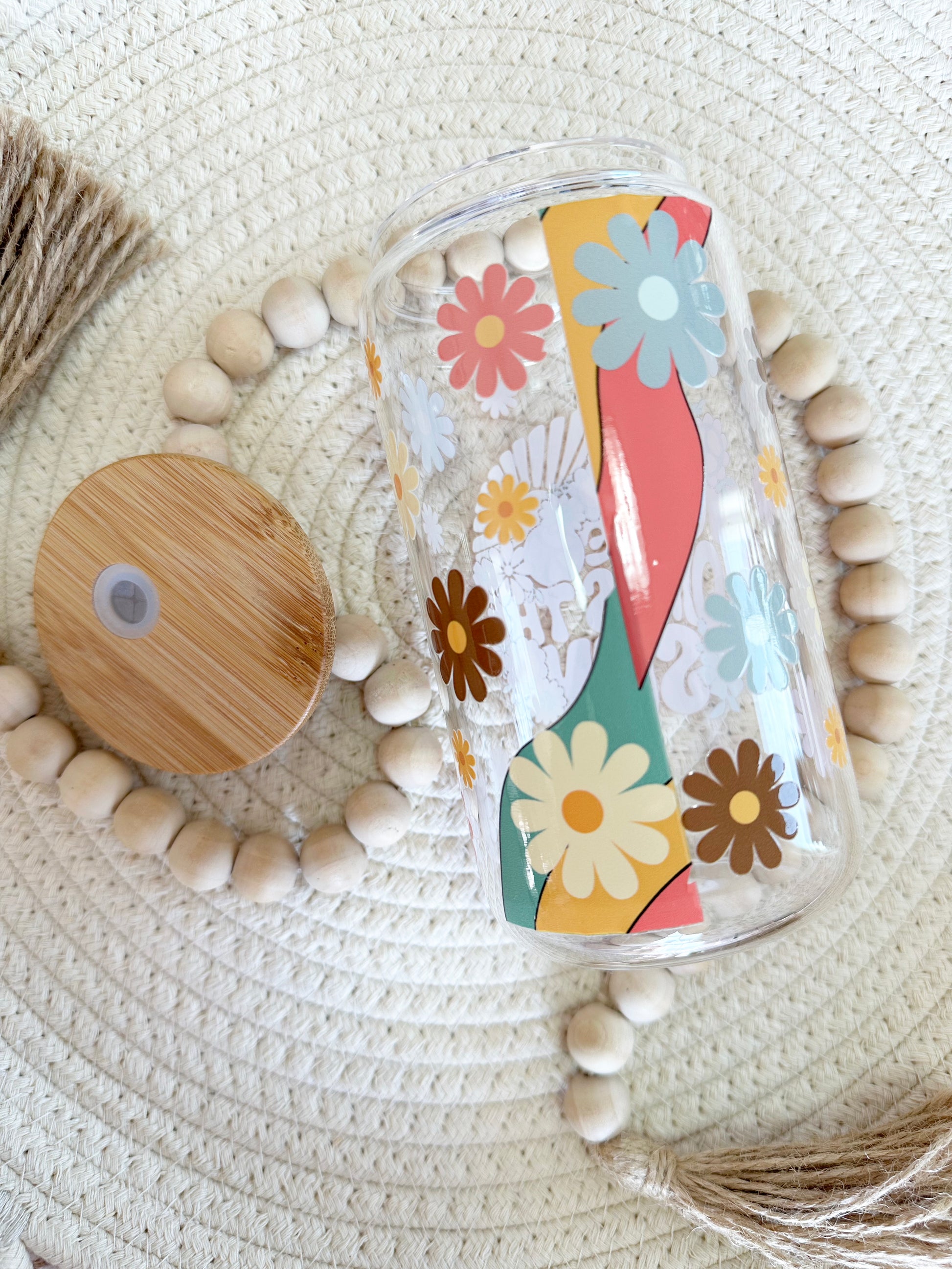 Includes bamboo bling lid and glass straw.